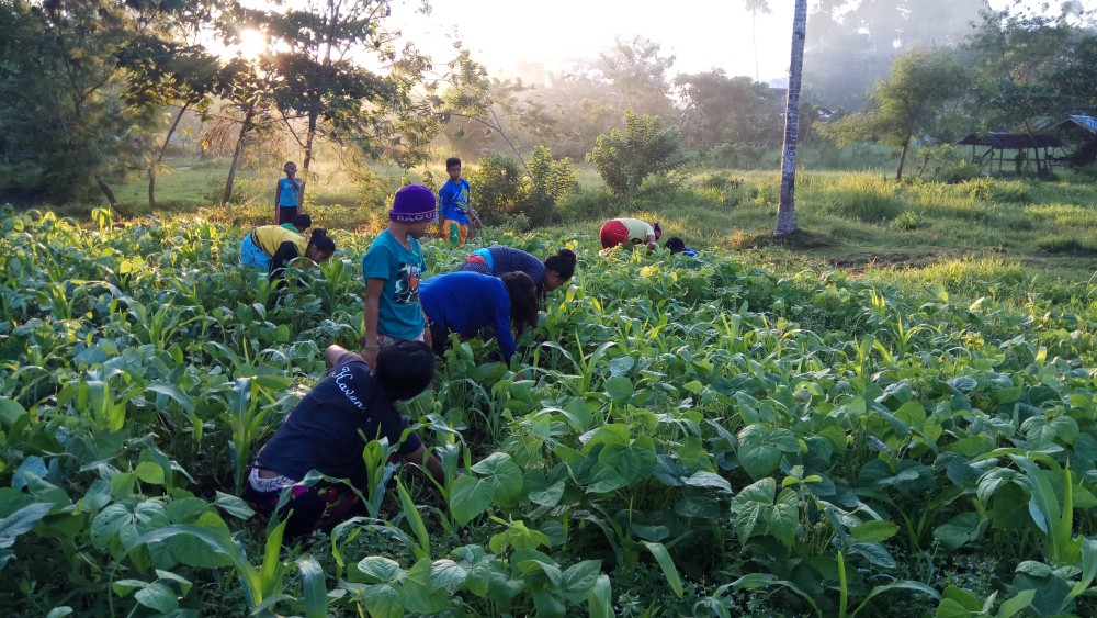 Om 4u30 's ochtends, wanneer de haan net kraait, zijn de leerlingen van Solidagro's partner ALCADEV (Alternative Learning Center for Agricultural and Livelihood Development = het alternatieve leercentrum voor ontwikkeling van landbouw en levensonderhoud) al wakker en klaar om aan hun dag te beginnen. Rond 5u trekken de leerlingen van de slaapzaal richting de moestuinen, waar ze de komende twee uur de grond bewerken.