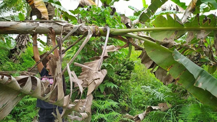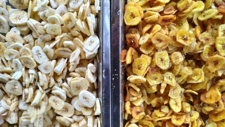 In onze schoolboerderijen staan honderden bananenbomen in volle bloei. De meeste bomen hebben al fruit gedragen. Sommige bananen waren bestemd voor directe consumptie. De andere bananen werden tot bananenchips verwerkt.