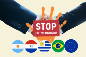 Momenteel wordt volop onderhandeld over het EU-Mercosur-verdrag. Een lichtpuntje: op 21 januari werd de finale goedkeuring uitgesteld om het verdrag nog te kunnen toetsen aan het Europees recht. Het EU-Mercosur-akkoord tussen de EU, Brazilië, Argentinië, Uruguay en Paraguay moet de handel tussen beide blokken uitbreiden door importheffingen af te bouwen en markten open te stellen. Maar het verdrag in zijn huidige vorm komt vooral ten goede aan een minderheid van grote bedrijven in Europa en Brazilië, ten koste van boeren, werknemers, het milieu en de burgers.